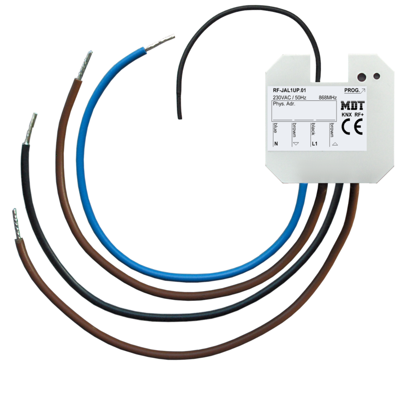 O Atuador de Estores KNX RF+ da MDT recebe telegramas KNX / EIB e permite controlar 1 motor independente de estore ou persiana. A saída