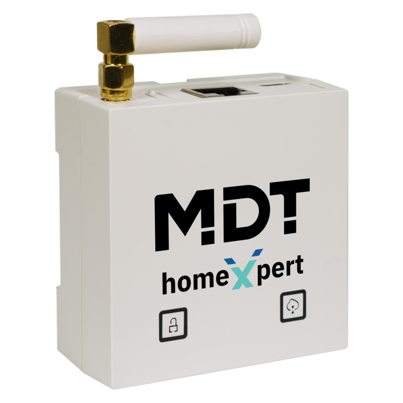 Servidor MDT homeXpert Interface central entre dispositivos MDT RF+ e a ferramenta MDT homeXpert Tool, permitindo visualizar o estado atual do edifício e o controlo interativo das funções Ver produto