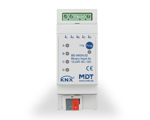 A Entrada Binária BE da MDT permite, por exemplo, tornar “inteligentes” para KNX botões de pressão convencionais, interruptores, contactos de janela e contactos auxiliares. A