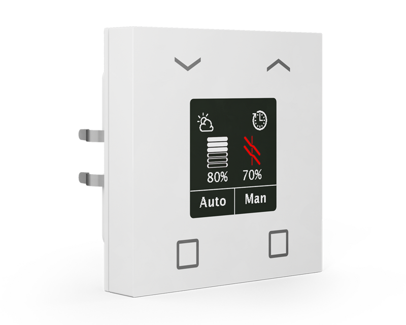 O MDT Botão de Estores Smart 55 com display a cores para indicação de função e estado foi especificamente desenvolvido para o controlo de estores